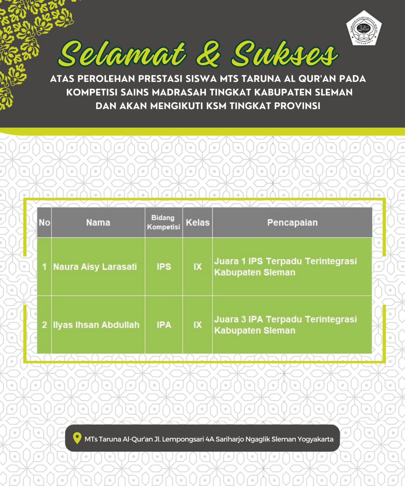 Perolehan Juara 1 dan 3