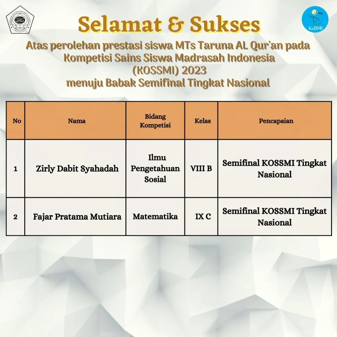 Lolos Babak Semifinal Tingkat Nasional Kompetensi Sains Madrasah 2023 (KOSSMI)