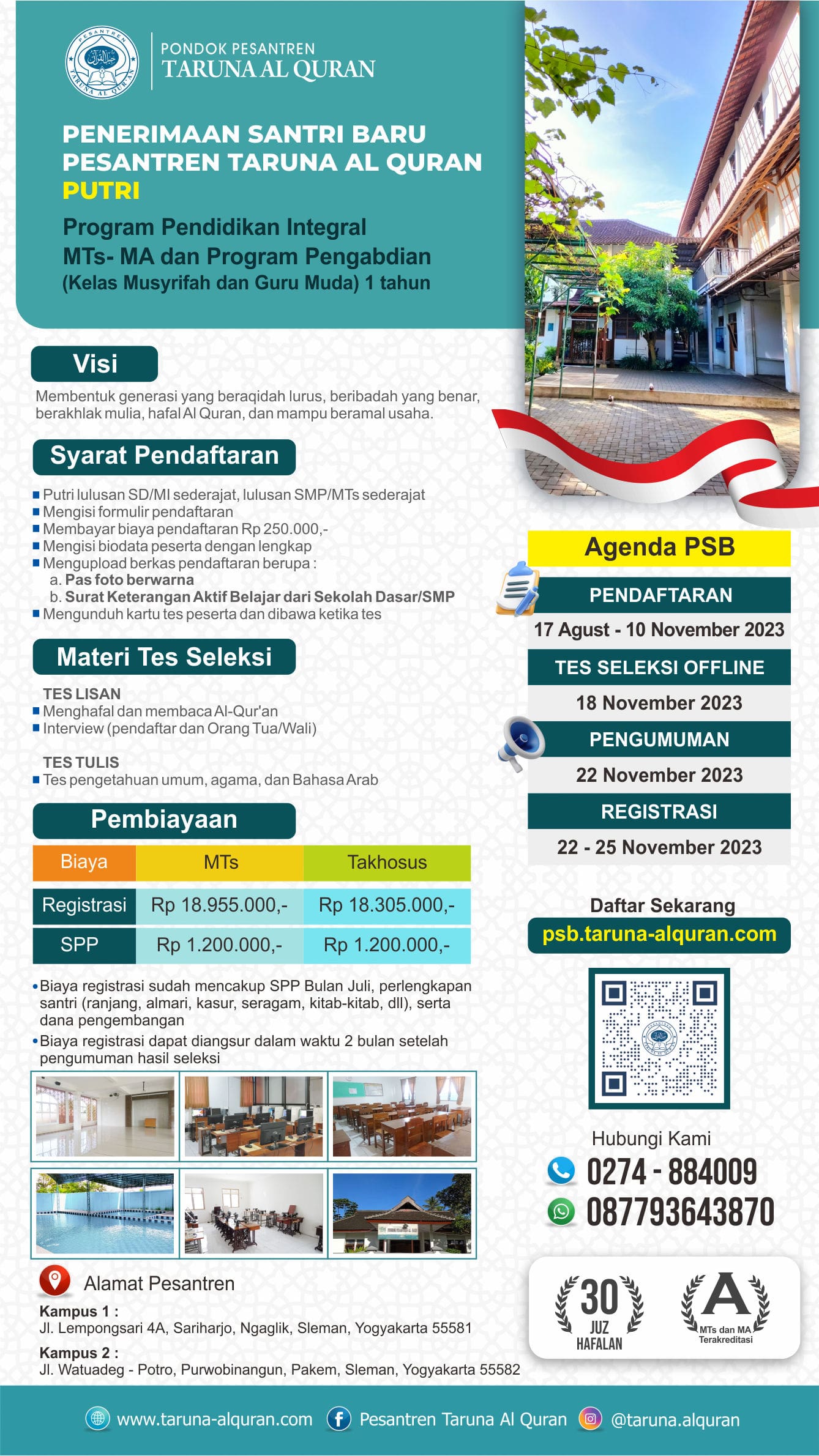 ALUR PENDAFTARAN CALON SANTRI BARU PONDOK PESANTREN TARUNA AL QURAN 2024/2025